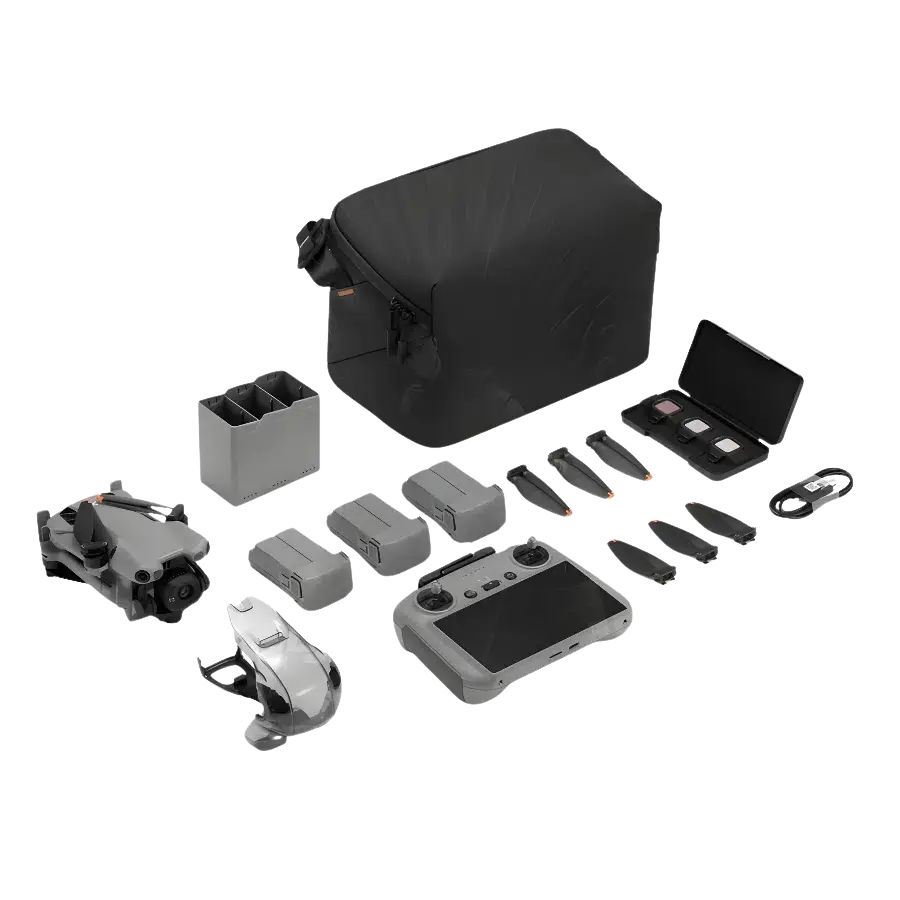 Combo Includes Drone, RC 2 Controller, 3 Batteries, Charging Hub, Propellers, Carry Bag, Cables