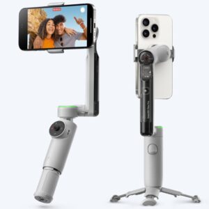 It’s a smart smartphone gimbal with AI tracking and 3-axis stabilization. It helps you shoot smooth, steady videos using just your phone.